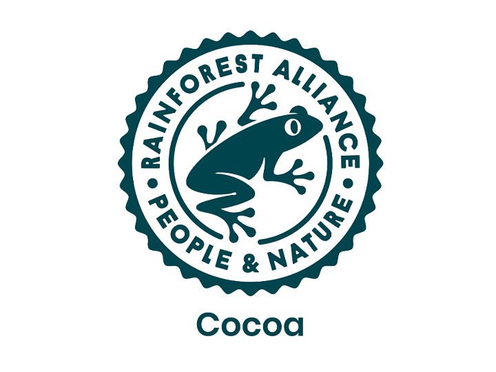Rainforest Alliance logo tähendab, et vastav kakao on kasvatatud kestlikumaid põllumajandus praktikaid arvesse võttes. Rohkem infot Rainforest Alliance kohta leiab nende kodulehelt: